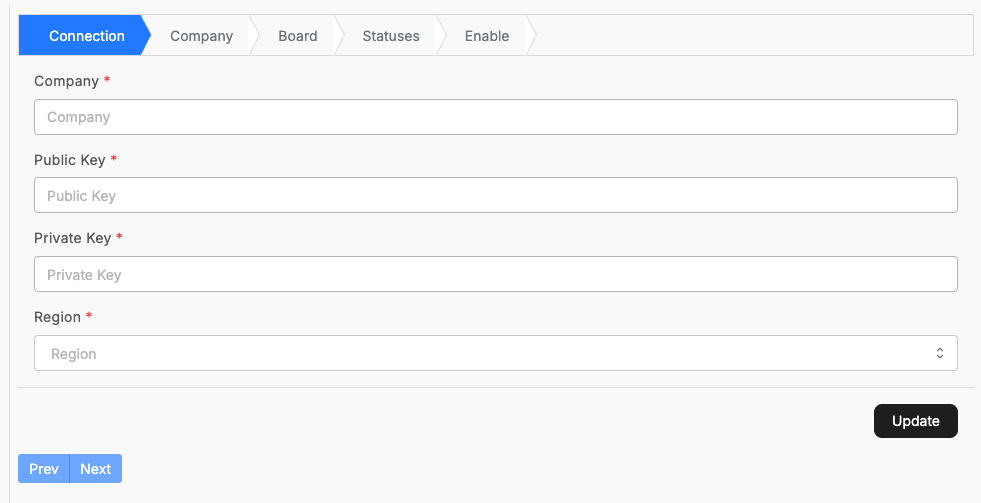 Follow the next steps of the wizard filling in fields detailing your ConnectWise setup and the API key created in the previous step.