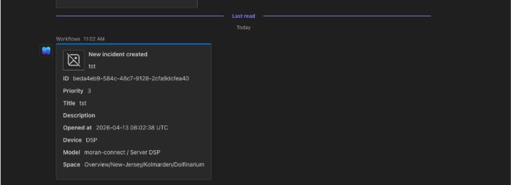 Connect Xyte incident notifications to a Microsoft Teams channel by creating a webhook in the Workflows app and adding it to your Xyte tenant.